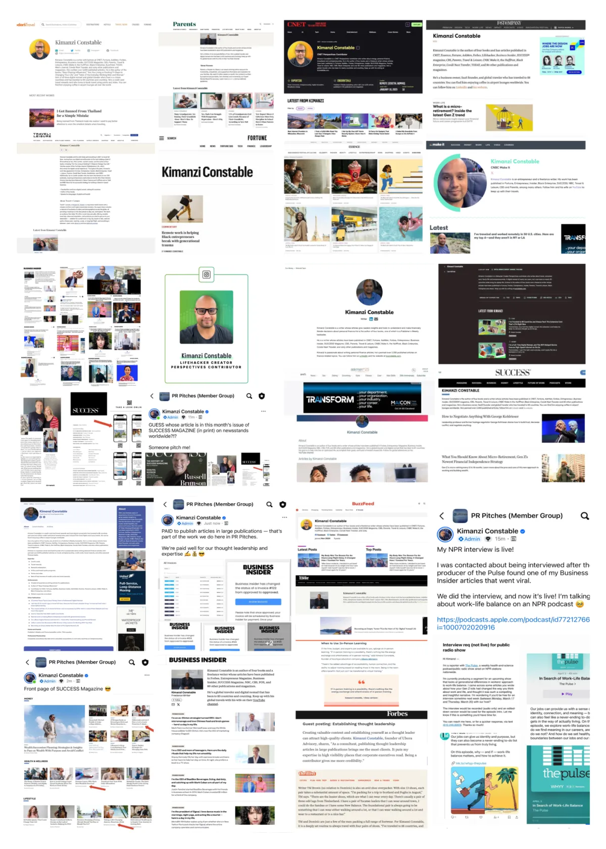 You can see my articles in Forbes, Entrepreneur Magazine, Business Insider, SUCCESS Magazine, NBC, CBS, FOX Business, Essence, Fast Company, Fortune, CNET, Lifehacker, Wall Street Journal, New York Post, and 80 other publications and magazines.