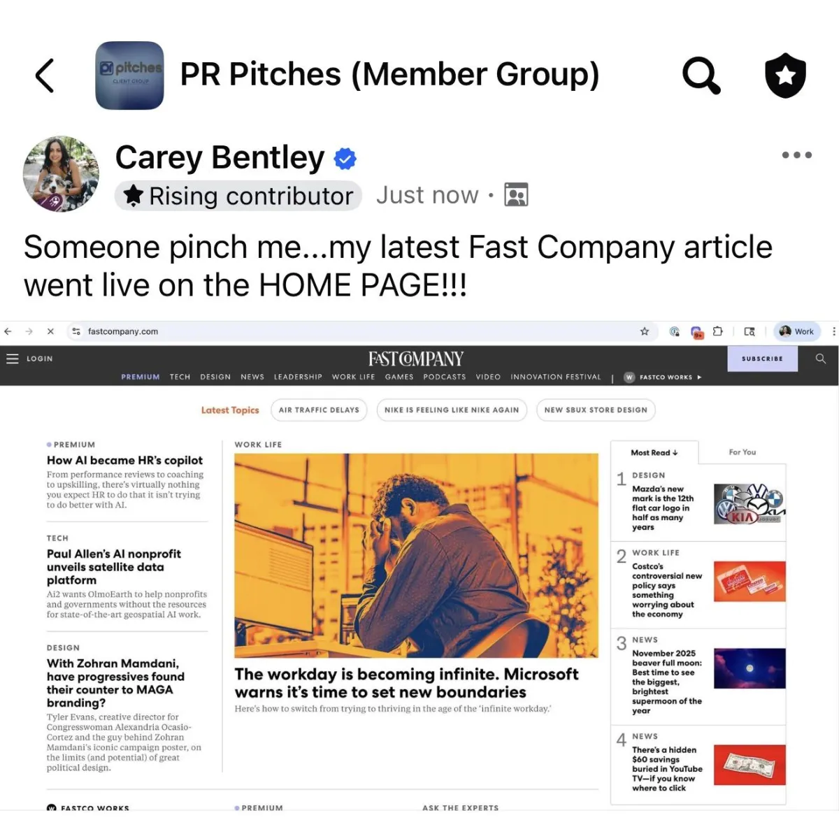 If you're a content creator, entrepreneur, PR agent, CEO, leader, agency, or anyone who wants more PR and earned major media features, this can be your reality.